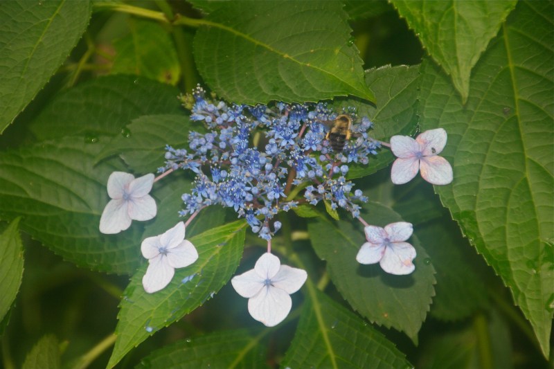 Blue Lacecap and a Bee